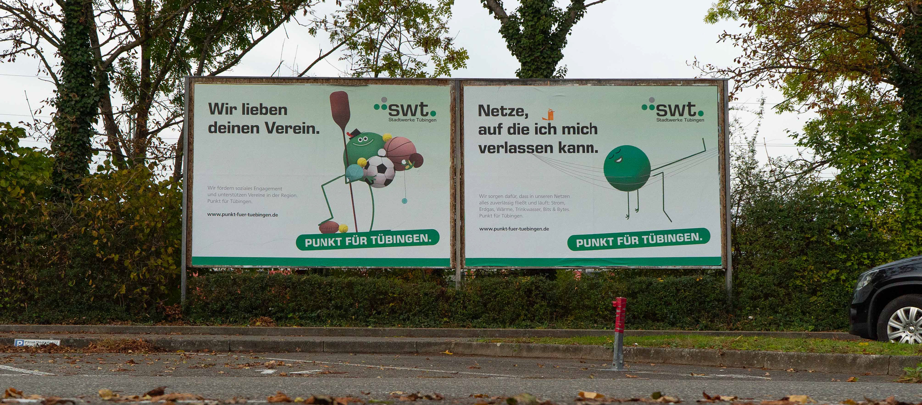The “Punkt for Tübingen” Campaign focuses on 4 different areas where Stadtwerke Tübingen improves everyone’s daily life. Therefore, the campaign consists of four different motives: